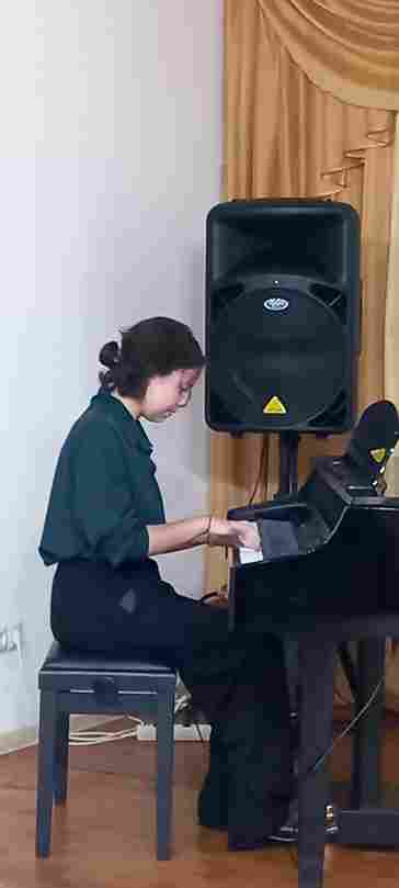 Екатерина Абрагимова, ученица 6 класса, лауреат зонального конкурса юных исполнителей «Звуки времени», для ребят исполнила «Прелюдия до мажор» И.С.Баха.