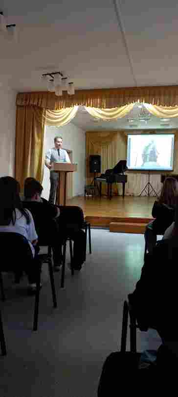 Преподаватель Ермоленко Роман Викторович выступил перед учащимися с информацией, которая указывала на значимость творчества композитора, ставшего классикой мировой музыки, и отмечается различными мероприятиями, такими как фестивали и выставки в Германии и России, сопровождая факты биографии, презентацией.