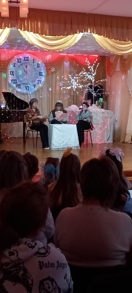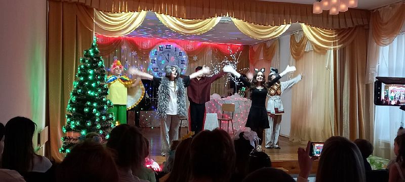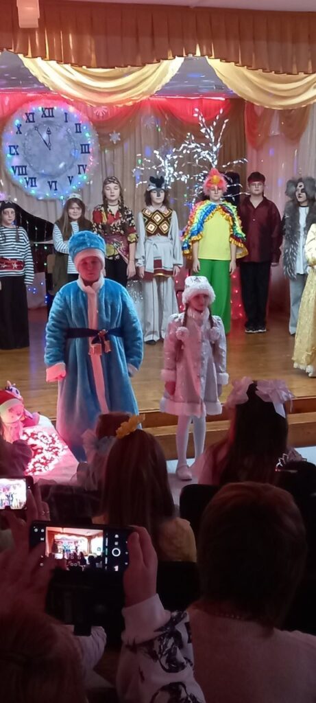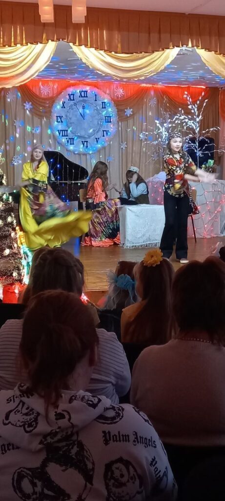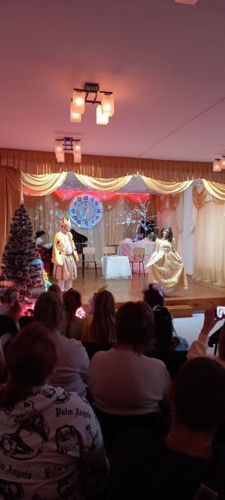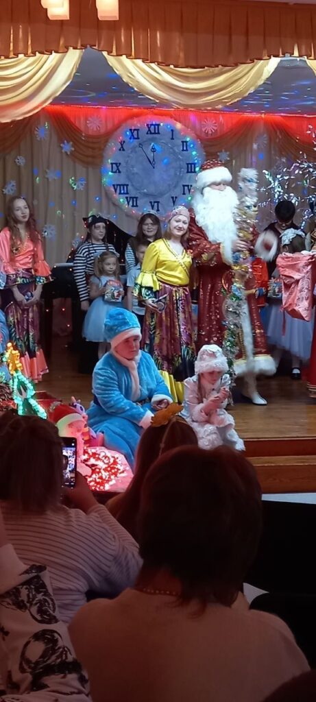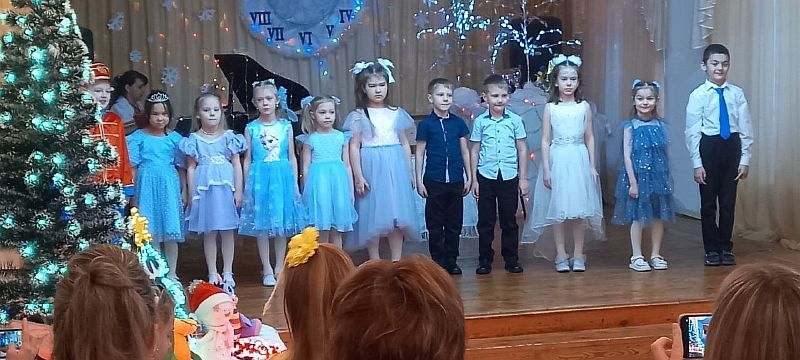 Сказочница Саидова Екатерина Викторовна, преподаватель «Музыкального фольклора» приветствовала юных учащихся — воспитанников детских садов г. Игарки, их родителей, маленьких гостей, впервые пришедших с родителями на сказочное представление в ДШИ. В исполнении группы дошкольников прозвучала трогательная песенка «Новогодний хоровод», которую ребята выучили и дебютировали с ней впервые на сцене ДШИ. Далее, представление продолжили волшебные МЕТЕЛИЦЫ — Короленко Полина и Абрагимова Катя, которые исполнили для всех гостей «Вальс» Г. Свиридова. Театрализованное представление «Бременских музыкантов» сопровождалось овациями присутствующих в зале гостей. Каждый участник — маленький артист! Ребята с удовольствием и по -актерски исполнили свои роли: ТРУБАДУР — Герега Демид, КОШКА — Усольцева Женя, ОСЁЛ — Куц Вика, СОБАКА — Шалатова Соня, ПЕТУХ — Шабанова Варя. Задорно и энергично были исполнены песня Г. Гладкова «Мы к вам приехали на час» и танец, который срежессировали и поставили сами учащиеся. Нарушили праздник — РАЗБОЙНИКИ — Старшова Лера, Зорина Вероника, Никитина Варя и к ним присоединились яркие ЦЫГАНКИ- Трунова Настя и Усова Кристина. Но, праздник детям они испортить не смогли! КОРОЛЬ (Крутиков Семен) и ПРИНЦЕССА (Лютикова Вика) инсценировали песенку Г.Гладкова «Ах ты, бедная моя трубодурочка». Появление ДЕДА МОРОЗА и СНЕГУРОЧКИ не вызвало у детей восторга, потому что ДЕД МОРОЗ оказался мал еще для того, чтобы объявить о наступлении Нового года и поздравить гостей с наступающим праздником. В исполнении всех АРТИСТОВ прозвучала песенка Г. Гладкова «Ничего на свете лучше нету». И тут появился настоящий ДЕД МОРОЗ под бой курантов. ОН поздравил всех детей и гостей праздника с наступающим новым 2026 годом и вручил всем детям подарки, приготовленные родителями заблаговременно. Родители обучающихся ДШИ это наши союзники и соучастники всех мероприятий, проводимых в ДШИ. Мы благодарим вас за понимание, отзывчивость и помощь в развитии дополнительного образования в ДШИ г. Игарки!
